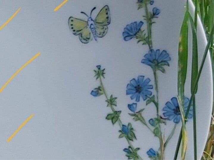 Die Metamorphose von Kräuter & Schmetterling vereint auf Porzellan...